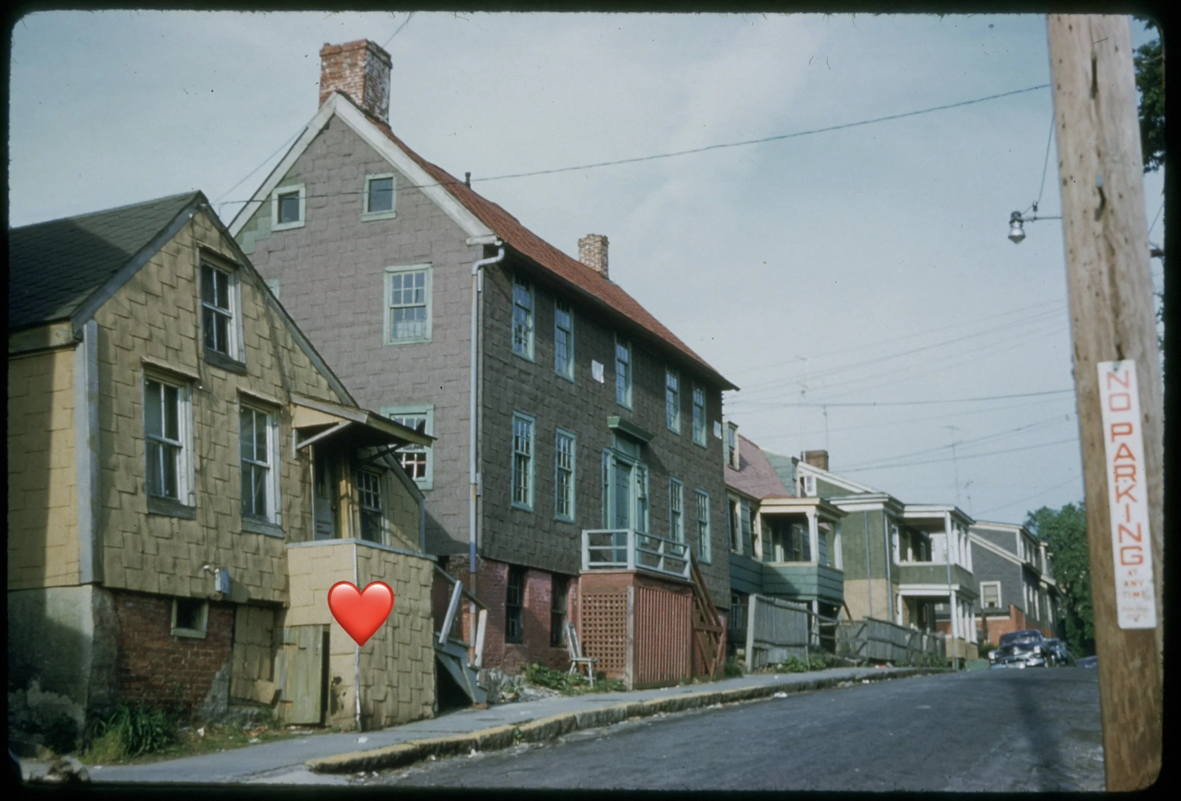 and here we are back in 1954, though the street layout has remained the same over the previous 150-200 years. The red heart is at 26 Hill Street.
