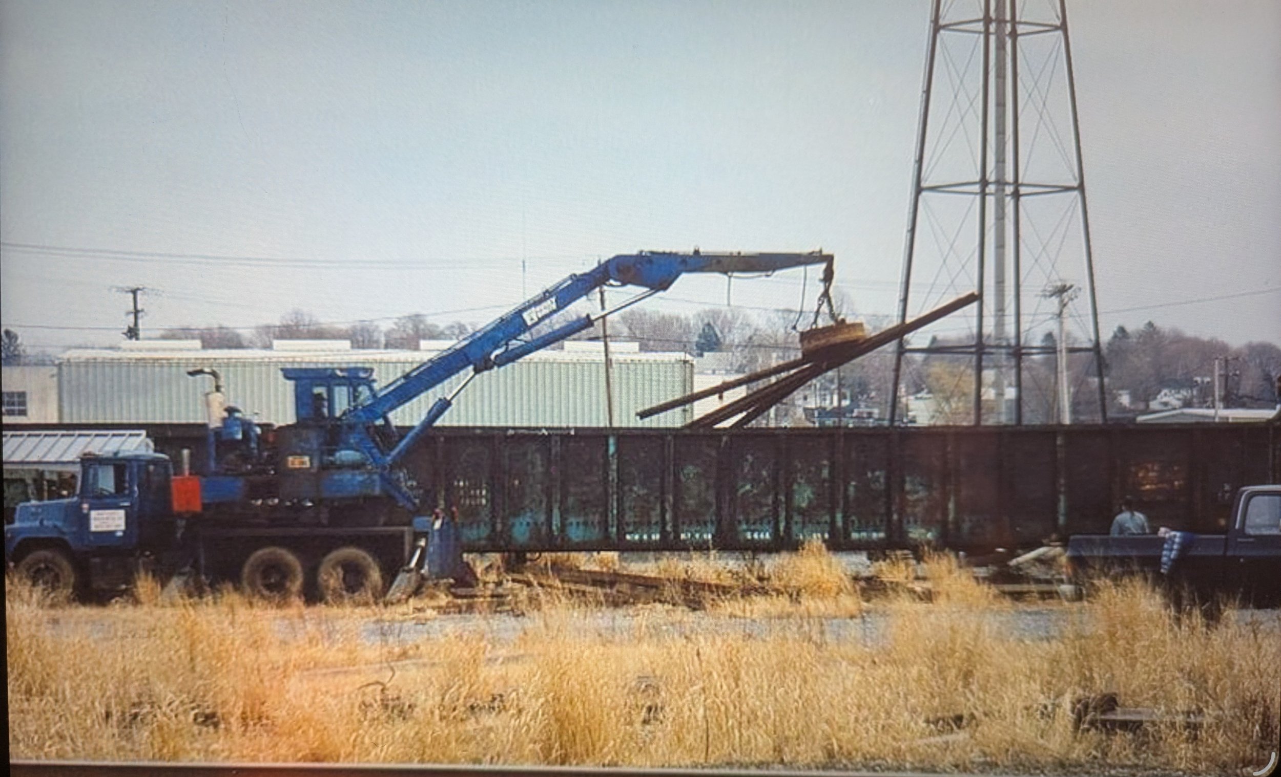 The last photo, this one taken by Mark Beebe on March 21, 1994. Shetucket Iron &Metal is loading a well-weathered Penn Central gondola with ripped up rail enroute the company‘s yard in Norwich.