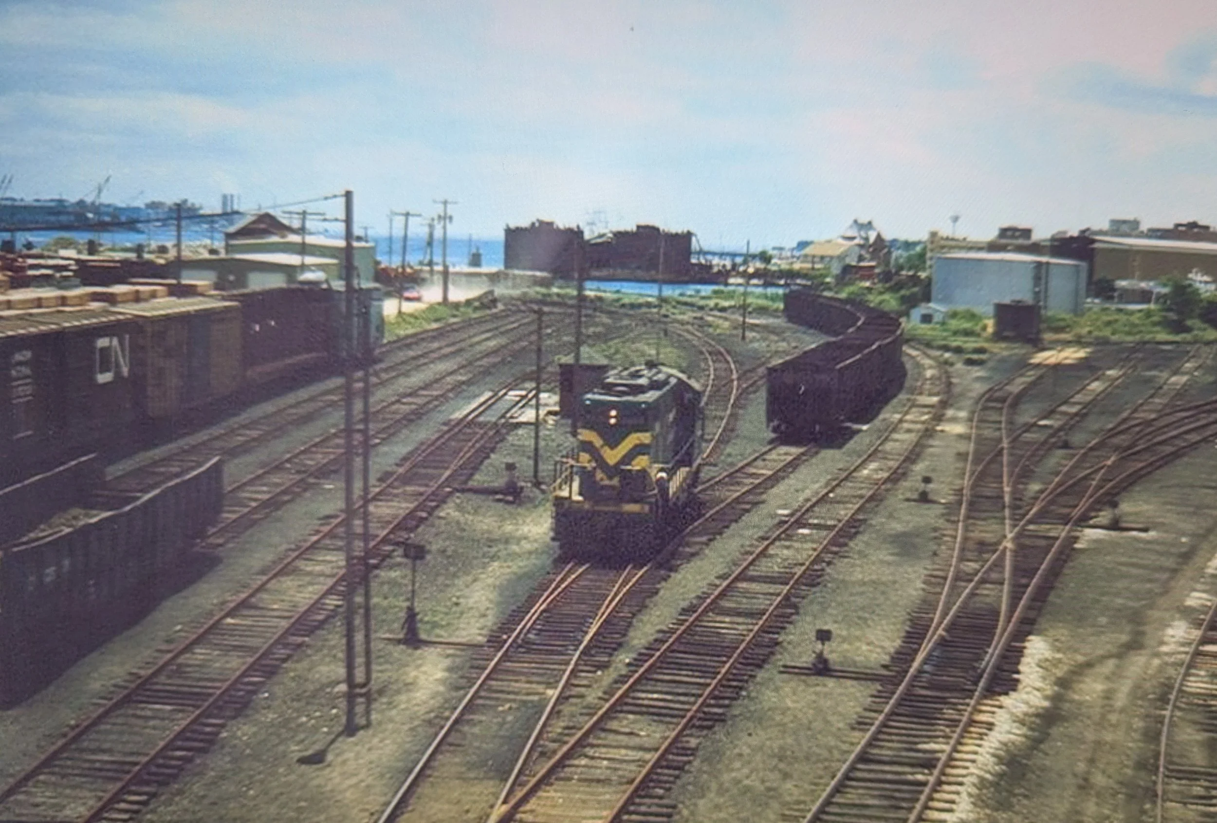 The south end of the yard. Note the scale house behind the engine and the floating dry dock beyond. The fuel tank to the right keeps the diesel locomotives running. Mark Beebe, both photos, 1987