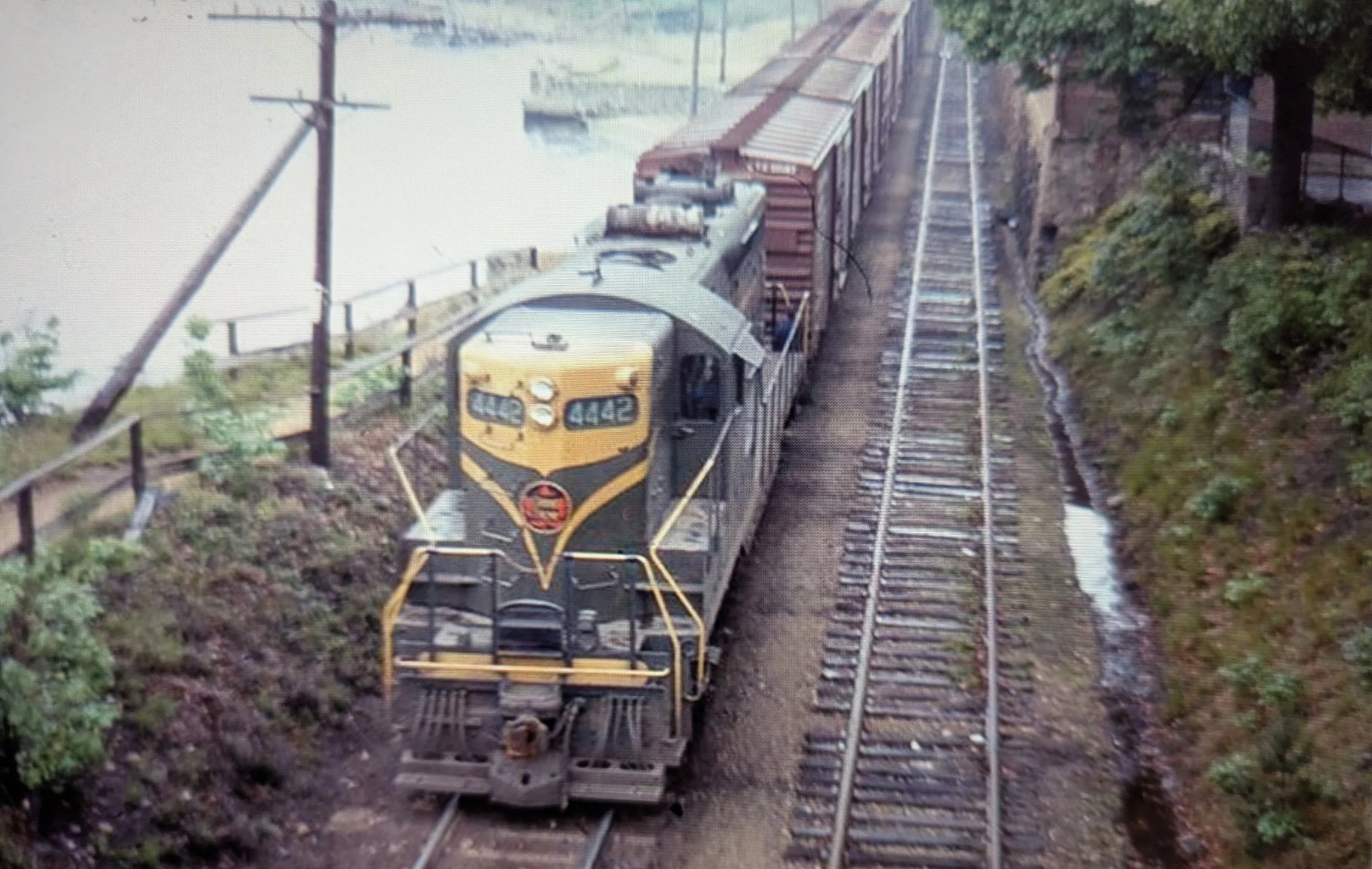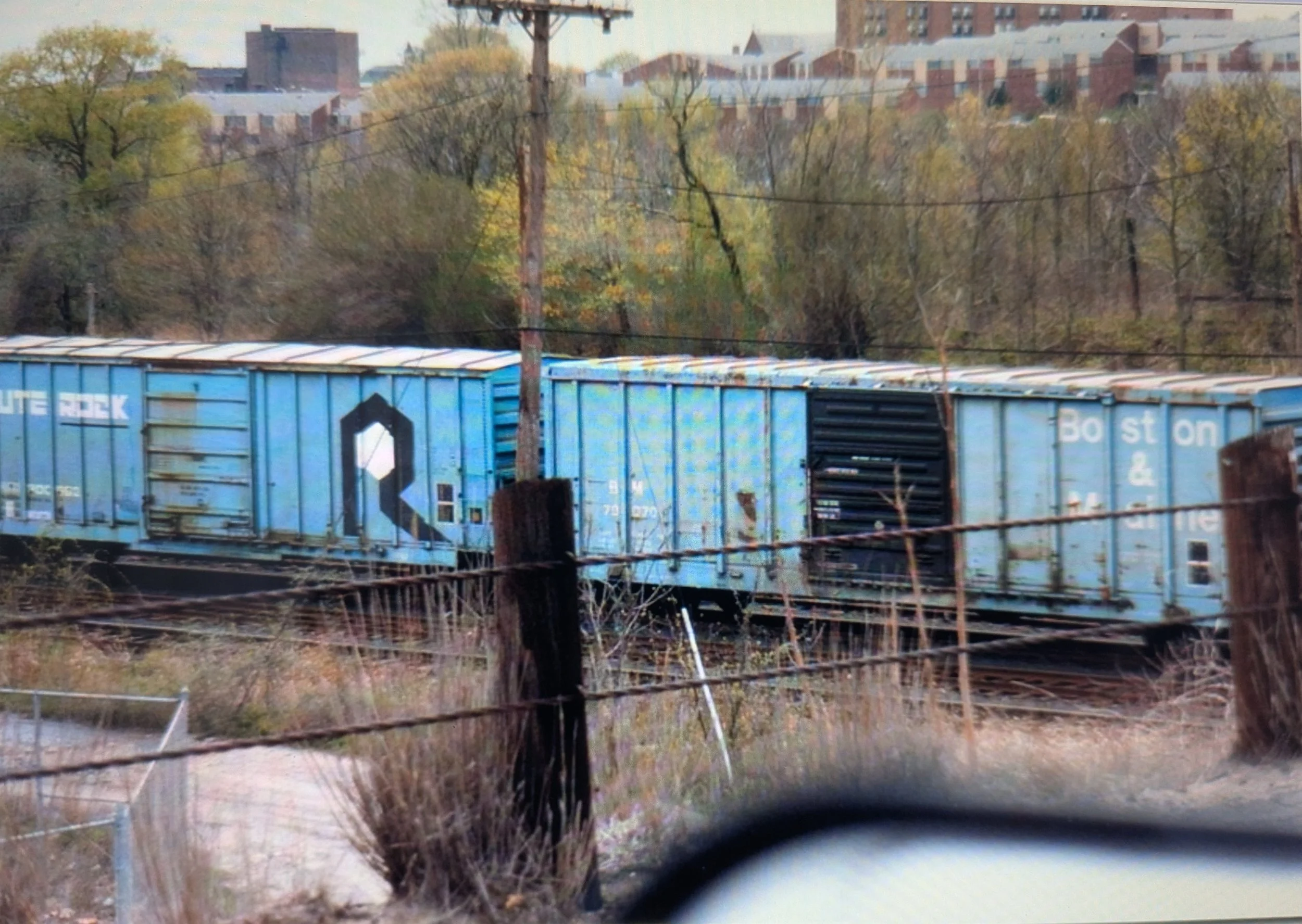 Before we reach the end, I wanted to include this picture of two fallen flags captured on the interchange track by Mark Beebe in 1982. A railroad company becomes a fallen flag when it loses it‘s identity through a merger or abandonment (or both). Unfortunately the two shown here are the Rock Island and the much closer Boston & Maine.