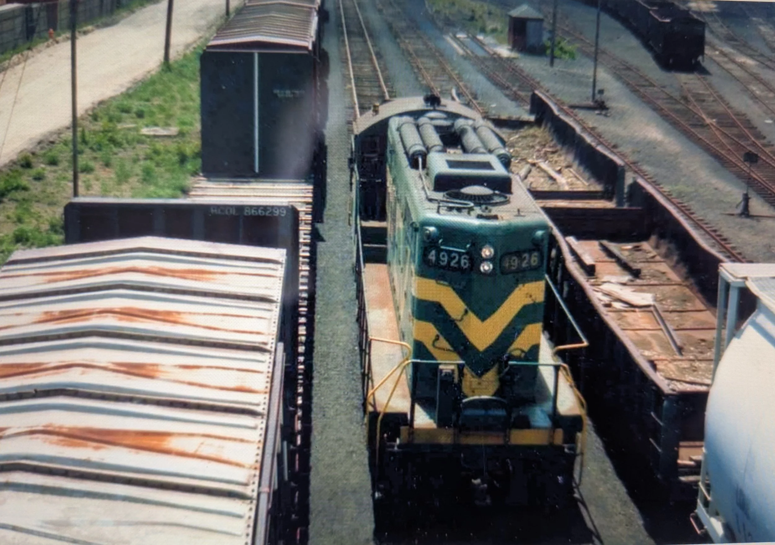 #4926 in a close-up… and no, they don‘t paint the tops of boxcars. Notice roof walks are no longer installed (or legal).