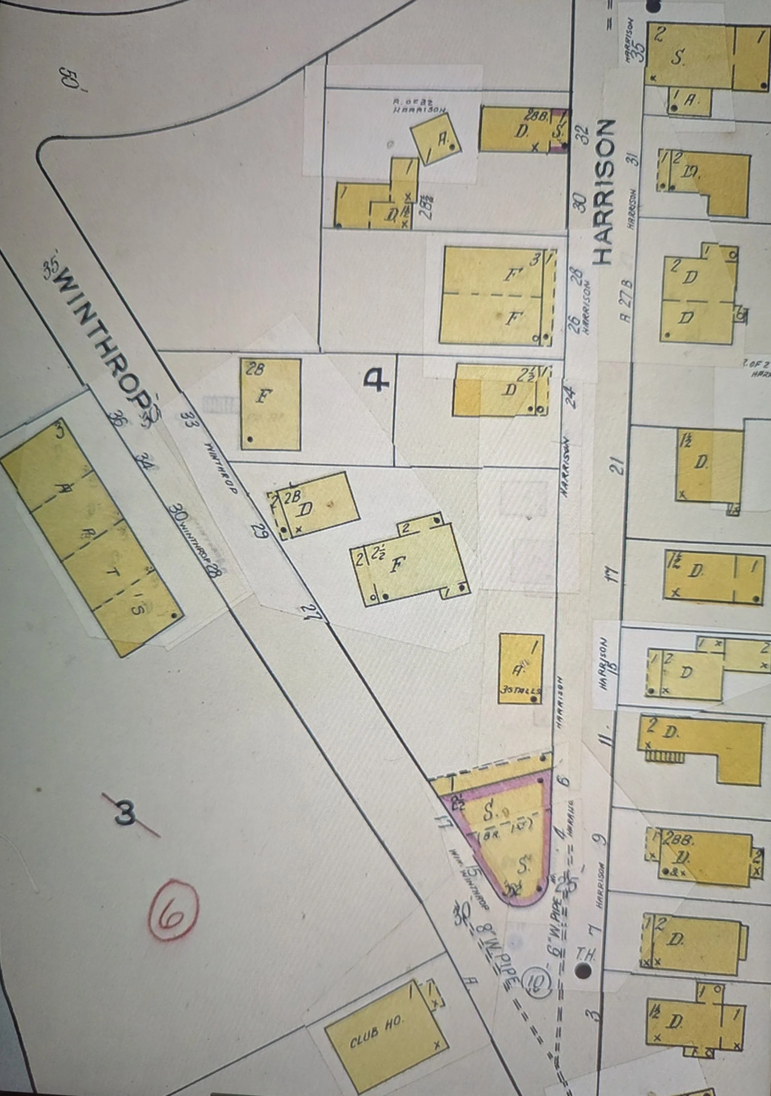 This is an enlargement of the Sanborn map from 1951. You can see the patched changes since 1921.