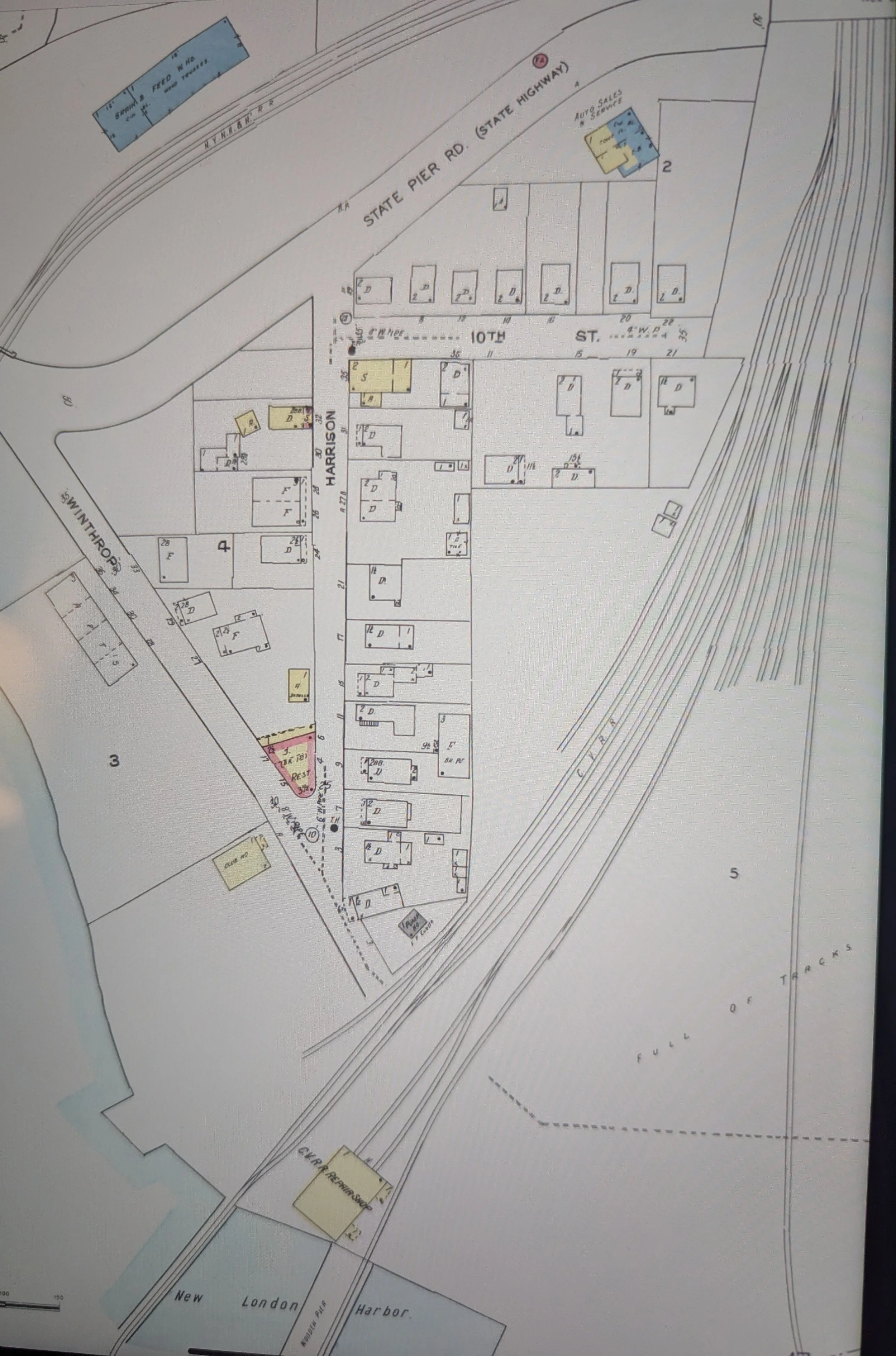 We are going to first look at the west side which sort of resembles a harp on the left side of the Central Vermont freight yard. The State Pier is on the right side of the tracks.In the lower left corner is the footbridge to Hallam Street.
